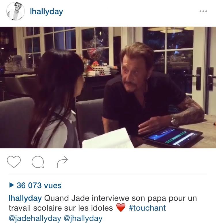 Après avoir changé de look pour son anniversaire sur Instagram, Laeticia Hallyday a décidé de poster une vidéo en hommage à son mari ce vendredi 8 mars. Cette fois-ci, c'est un moment très touchant entre Johnny Hallyday et sa fille Jade que les fans ont pu découvrir. La fille du chanteur l'interroge sur sa carrière pour un projet d'école. Visiblement très heureux, Johnny Hallyday aborde un large sourire. Laeticia Hallyday a ajouté une légende à la vidéo : "Quand Jade interviewe son papa pour un travail scolaire sur les idoles #touchant."